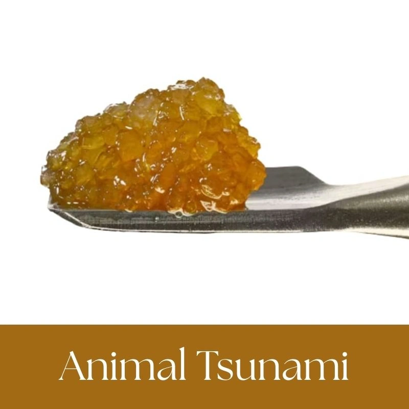 Rosin Animal Tsunami is an indica dominant hybrid. It’s known for its sweet, dessert-like flavors with earthy undertones and delivers a powerful relaxing high that can ease stress and pain.